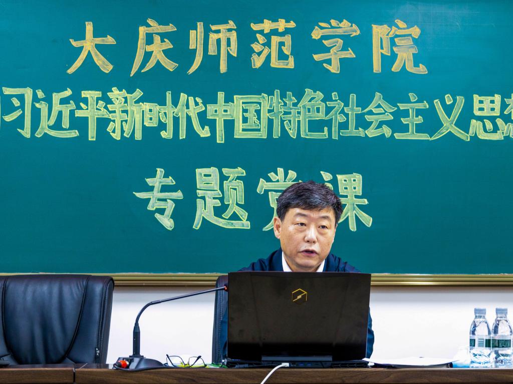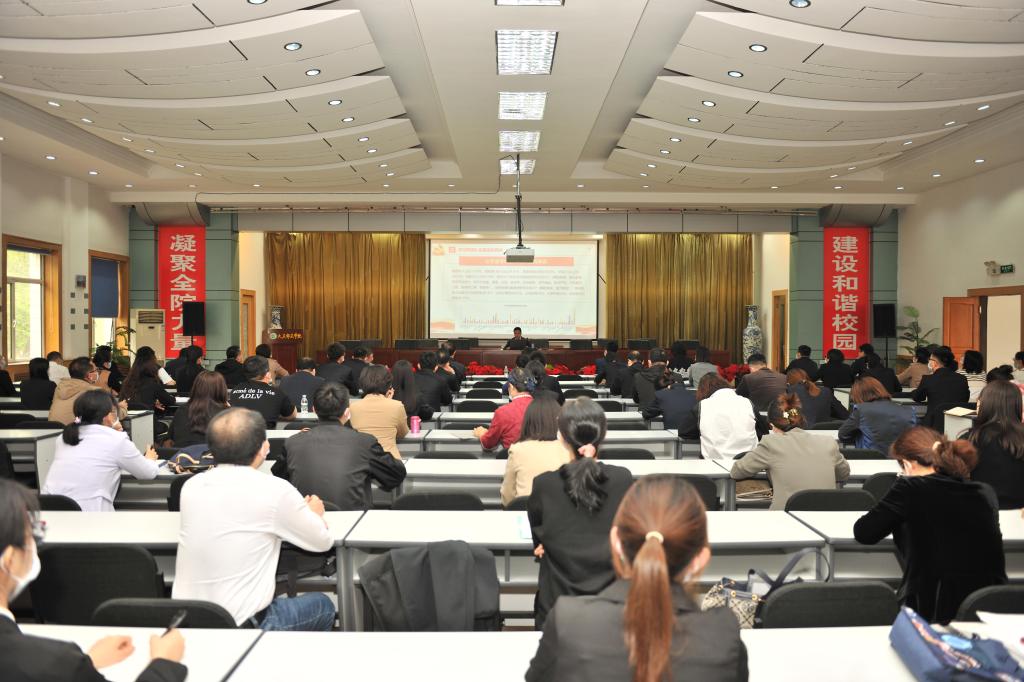 校党委委员、副校长王福友在主楼634会议室以《以习近平新时代中国特色社会主义思想为指导,努力推动学校高质量发展》为题,分别从办学的政治方向、教学科研的中心地位、内涵建设的目标、依法治校的机制、办学特色等五个方面系统论述。他强调,要实现武装头脑、指导实践和推动工作的统一;要运用党的创新理论,推动我校高质量发展。