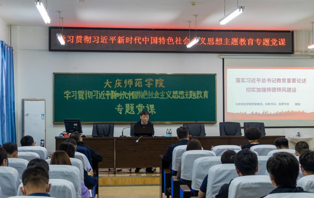 校党委委员、纪委书记、监察专员滕强在机电工程学院306室以《落实习近平总书记教育重要论述,切实加强师德师风建设》为题,对习近平总书记有关教师队伍建设的要求、教师职业行为准则等进行了详细解读。他强调,要严格落实师德建设的主体责任,建立完善的工作机制;要将师德师风作为评价教师队伍素质的第一标准,切实加强师德师风建设。