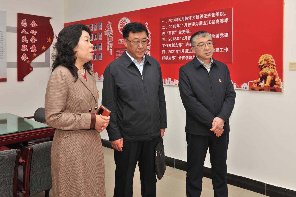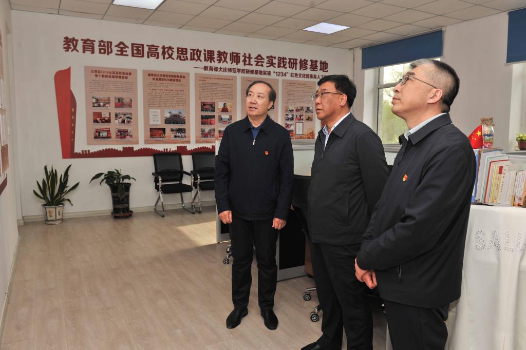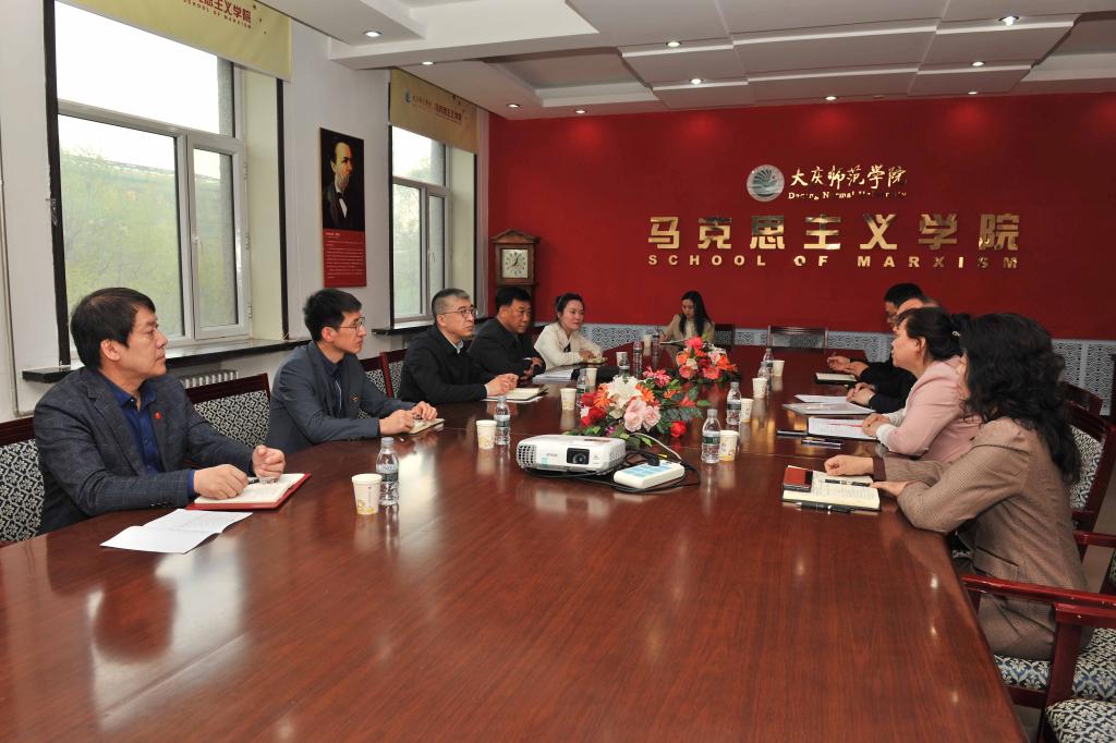 赵科学和指导组先后来到大庆精神文献研究中心、马克思主义学院教工党支部党员之家、设在我校的全国高校思想政治理论课教师研修基地以及马克思主义学院各教研室走访调研。了解了我校近年来大庆精神研究的主要方向和科研成果,听取了首批“全国高校样板党支部”的创建工作经验,考察了设在我校的全国高校思想政治理论课教师研修基地建设情况,观看了铁人精神育人思政课程教学成果。